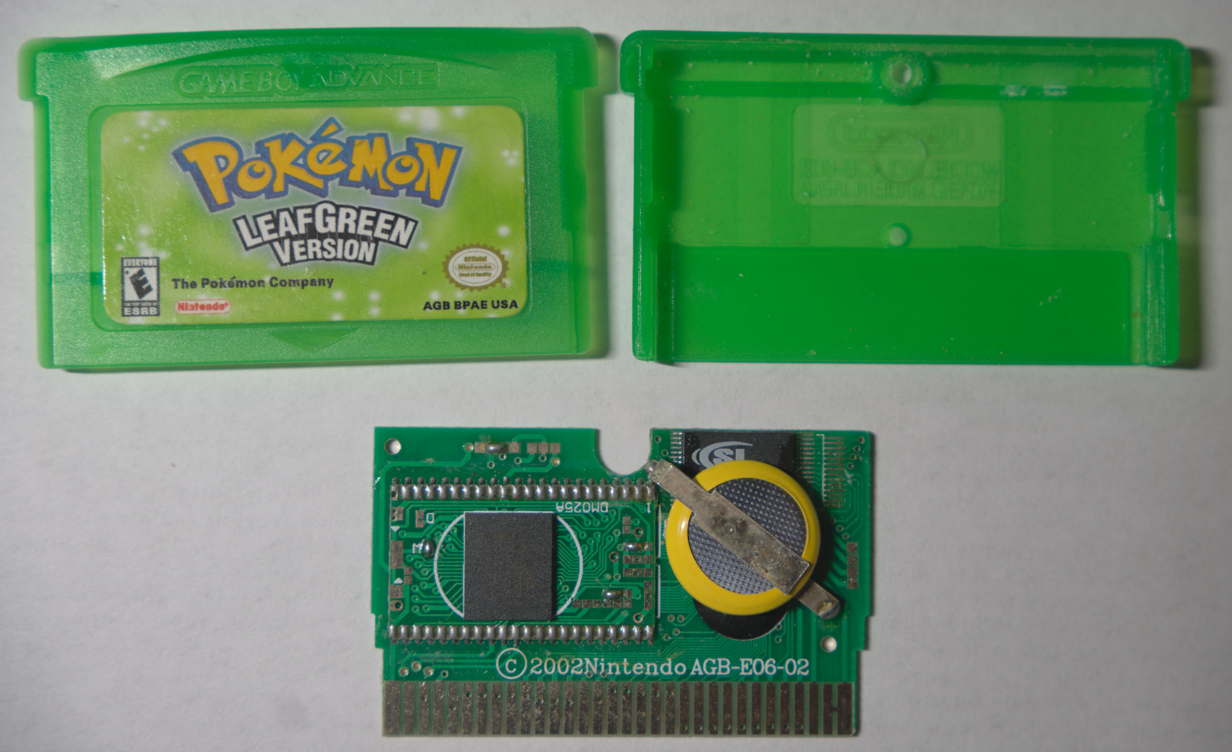 A Pokemon LeafGreen fake using the 256L30B flash chip and is62lv1024ll-55h sram